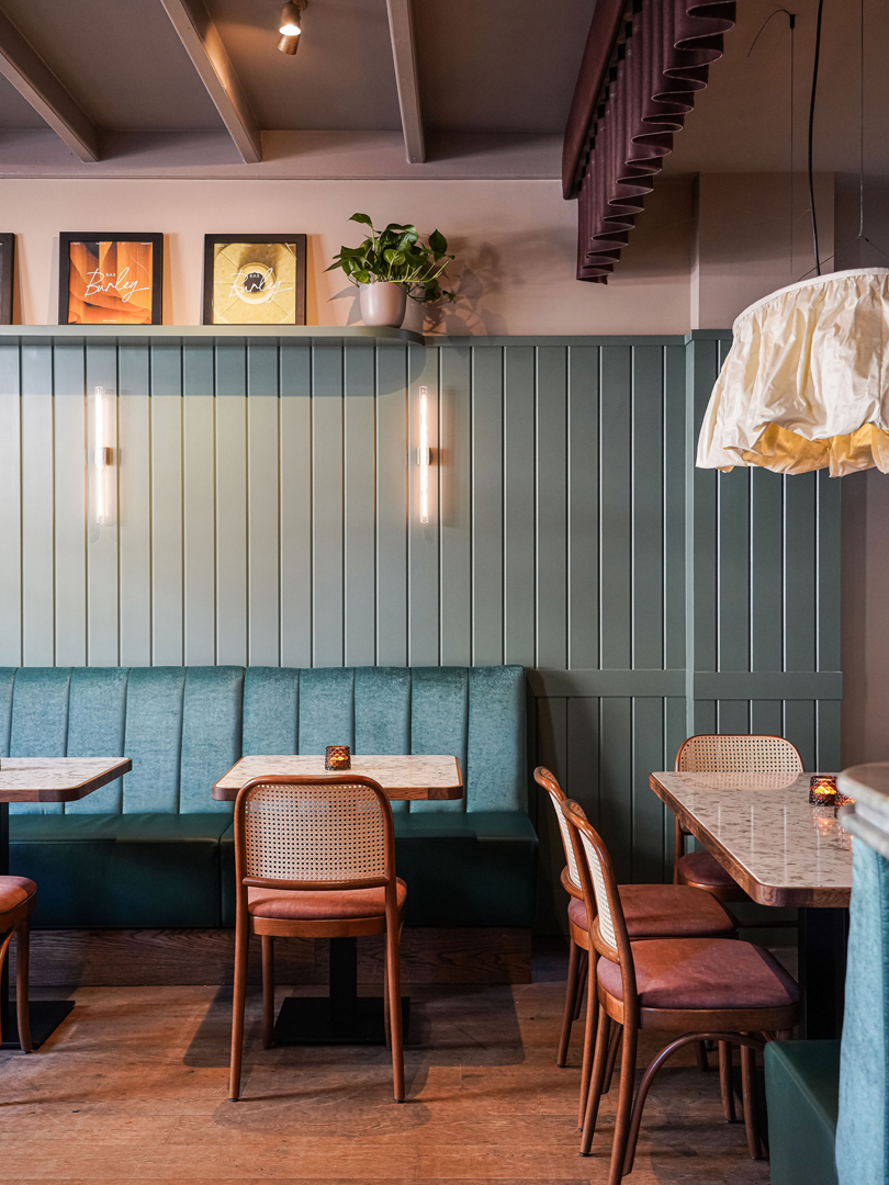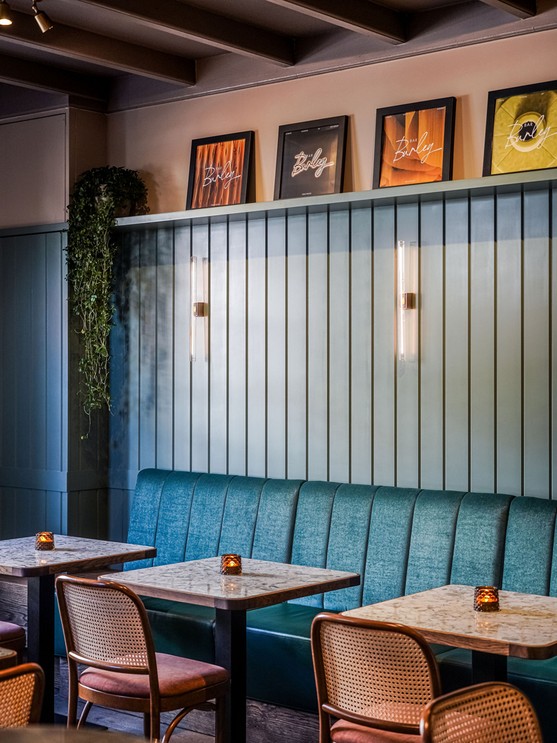 Voor Bar Burley in Wageningen heeft ESTIDA het volledige traject verzorgd: van interieurontwerp en horecadesign tot en met de interieurbouw en uitvoering. Door deze integrale aanpak is een consistent geheel ontstaan waarin ontwerp en uitvoering nauw op elkaar aansluiten en elkaar versterken.