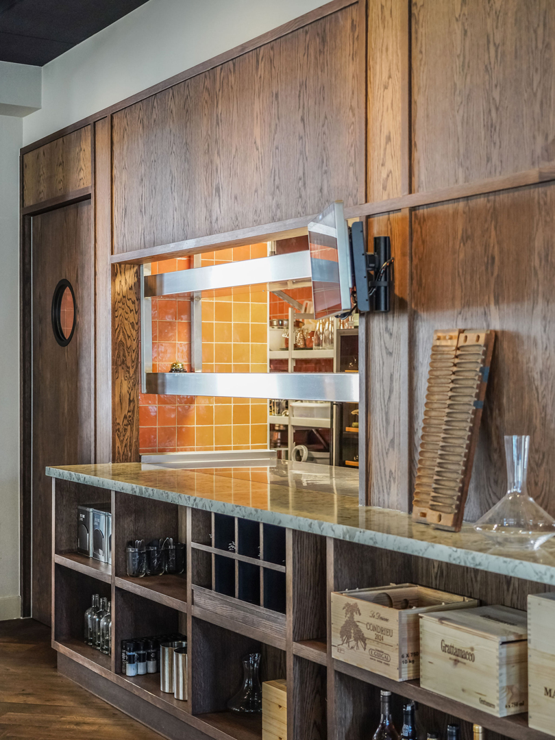 De begane grond biedt ruimte aan 86 gasten, verdeeld over een restaurant- en bargedeelte. Op de eerste verdieping zijn twee ruimtes ingericht voor vergaderingen en evenementen, elk met een eigen bar. Binnen het hospitality-ontwerp is rekening gehouden met flexibiliteit in gebruik en een logische routing voor zowel gasten als personeel.Centraal Station dat pal tegenover het restaurant ligt.
